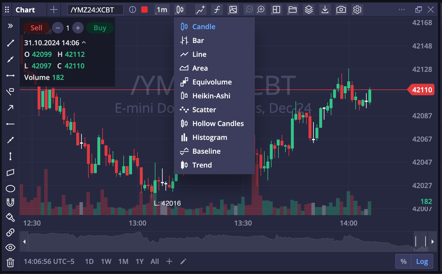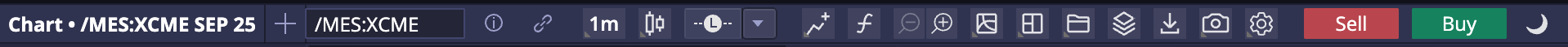 Trade from within the chart utilizing the order entry tools embedded in the widget, using the buy/sell buttons at the top of the widget, or by right-clicking within the chart.
