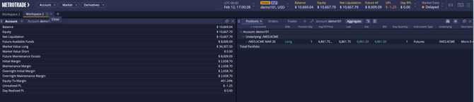 The account tab is a one-stop shop to see account balances, margin requirements & utilization, and unrealized P&L.